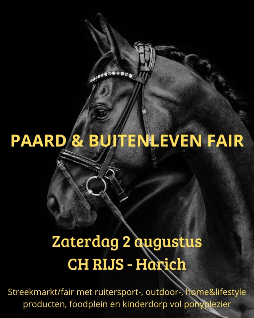 Tijdens het CH Rijs in op zaterdag 2 augustus in Harich organiseren we een sfeervolle Paard & Buitenleven Fair met naast een aantal standhouders met streek- en kwalitatief mooie producten ook een aantal kramen met ruitersportartikelen.